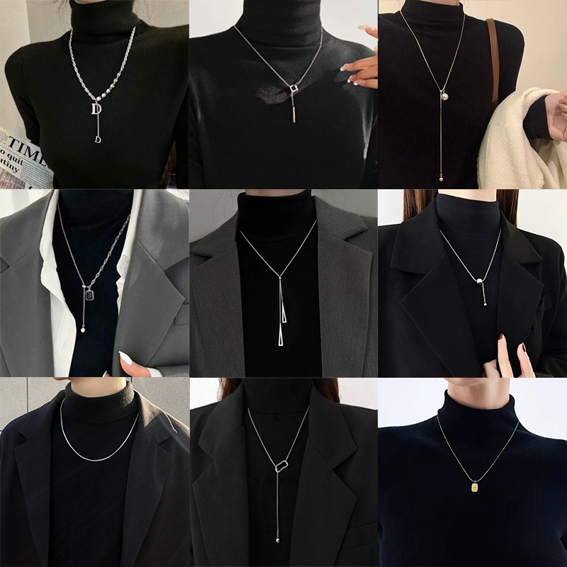 Sweater Chain for Women, High-End Simple Triangle Pendant Sweater Necklace, Double-Layer Square Pendant Collarbone Chain Jewelry Wholesale Short Style