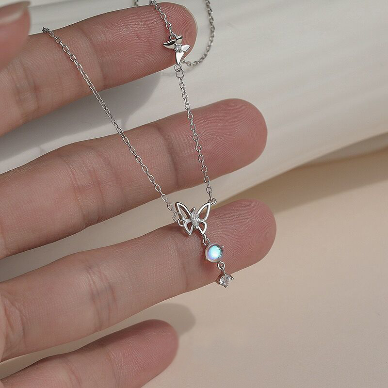 Silver jewelry new s925 sterling silver moonstone butterfly spring pendant necklace female niche design sense online celebrity clavicle chain