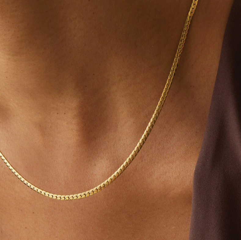 savi Same Style European and American ins Titanium Steel Snake Bone Chain Overlapped Wear Clavicle Chain Fashionable Personalized Vintage Plain Chain Necklace for Women