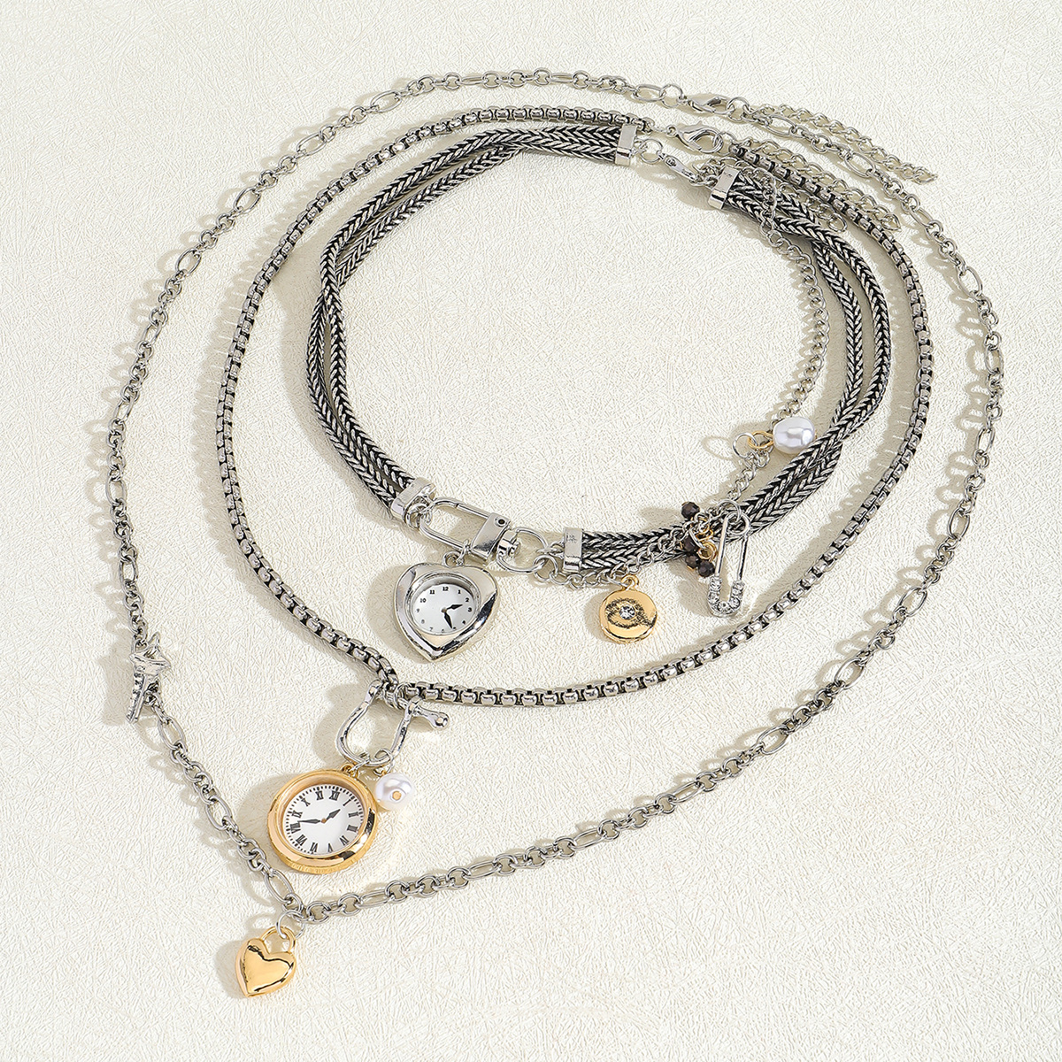 Za New European and American Style Watch Heart Necklace Light Luxury Niche Multi-Layer Vintage Style Pendant Irregular Diamond Sweater Chain