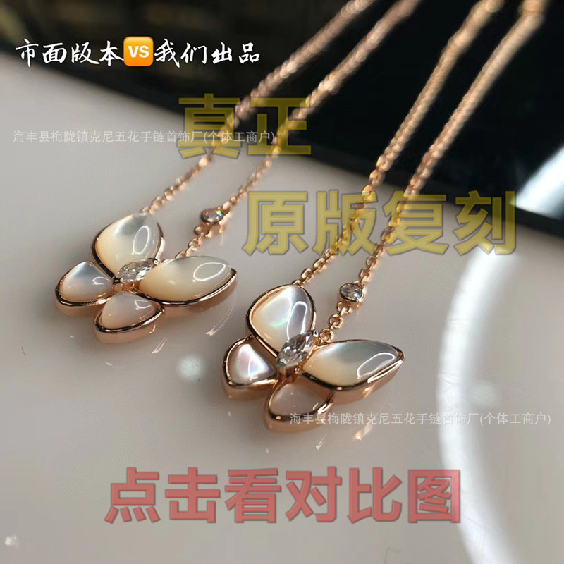 High-End Version Four-Leaf Clover Butterfly Mother-Of-Pearl Necklace for Women, Light Luxury Niche Design Clavicle Chain V Gold Gift for Girlfriend or Best Friend