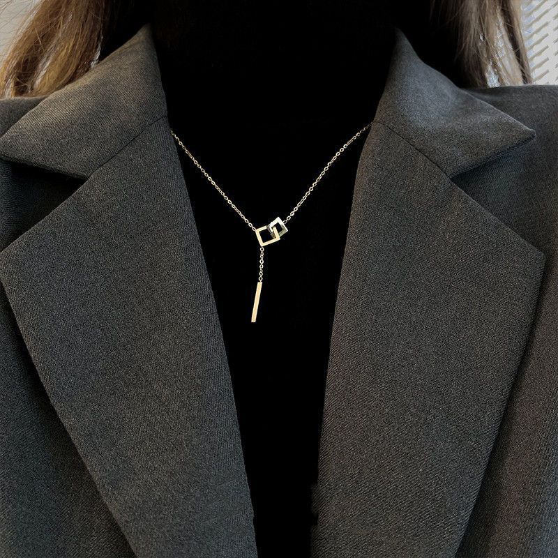 South Korea New exquisite micro-inlaid small square zirconium titanium steel necklace simple all-match temperament Internet celebrity same style silver clavicle chain
