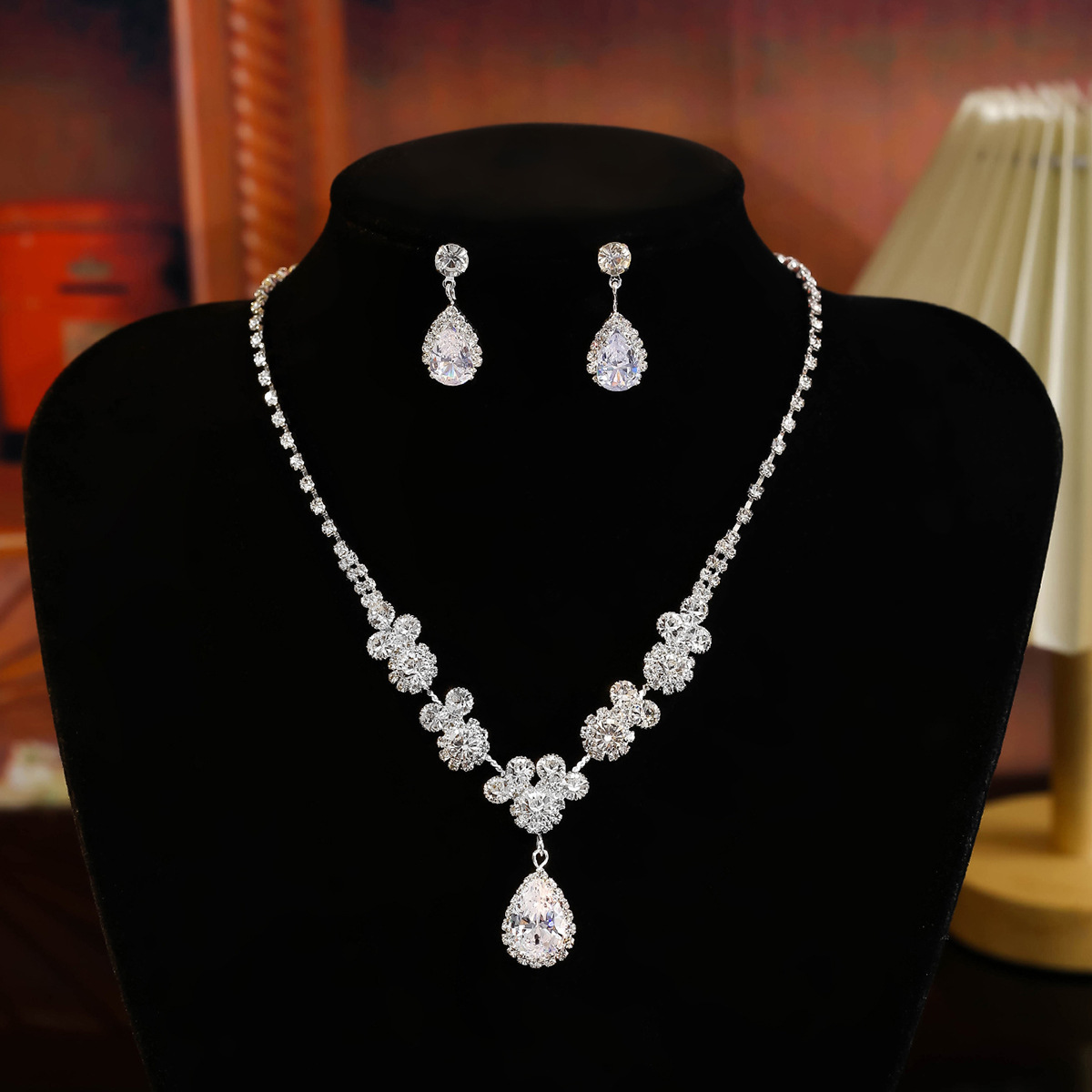 Wedding Queue Bride Jewelry Women's Decorative Fashion Claw Chain Brilliant Diamond Banquet Necklace Earrings Two-piece Set
