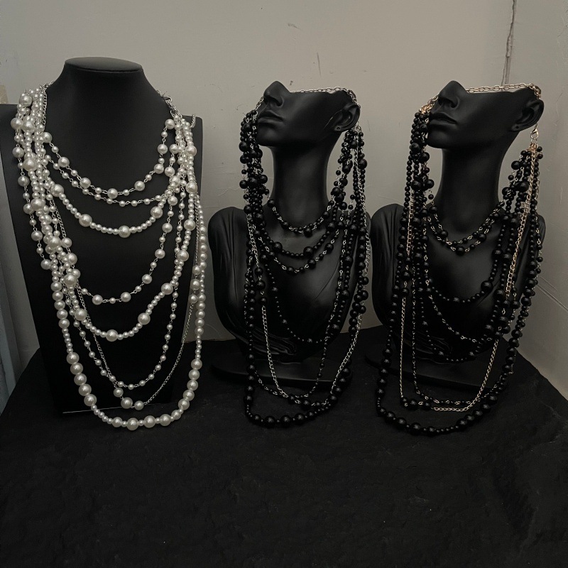 Unique Stylish Exaggerated Pearl Stacked Tassel Necklace Women's Niche Design Long Clavicle Chain High-End Necklace