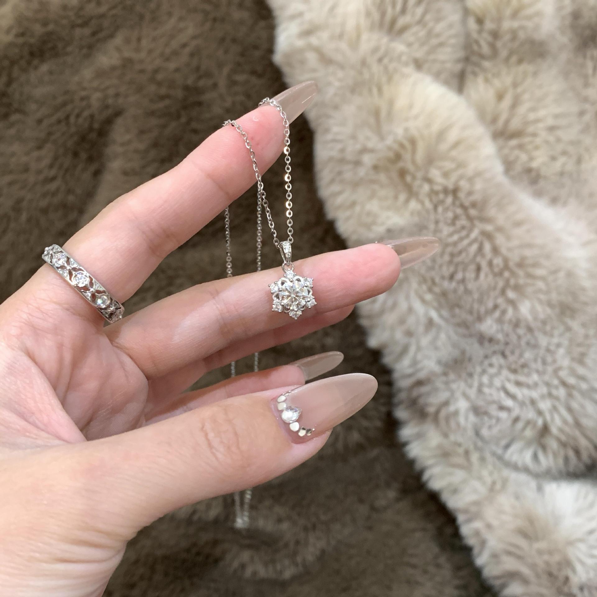 Korean Ins Niche Design Fresh S925 Sterling Silver Cut Out Snowflake Necklace for Women Simple Elegant High-End Accessible Luxury