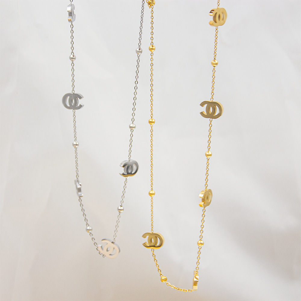 Stainless Steel Double C Necklace Titanium Steel Color-proof Light Luxury Simple Fashion Collar Chain Tassel Round Bead Necklace Chain