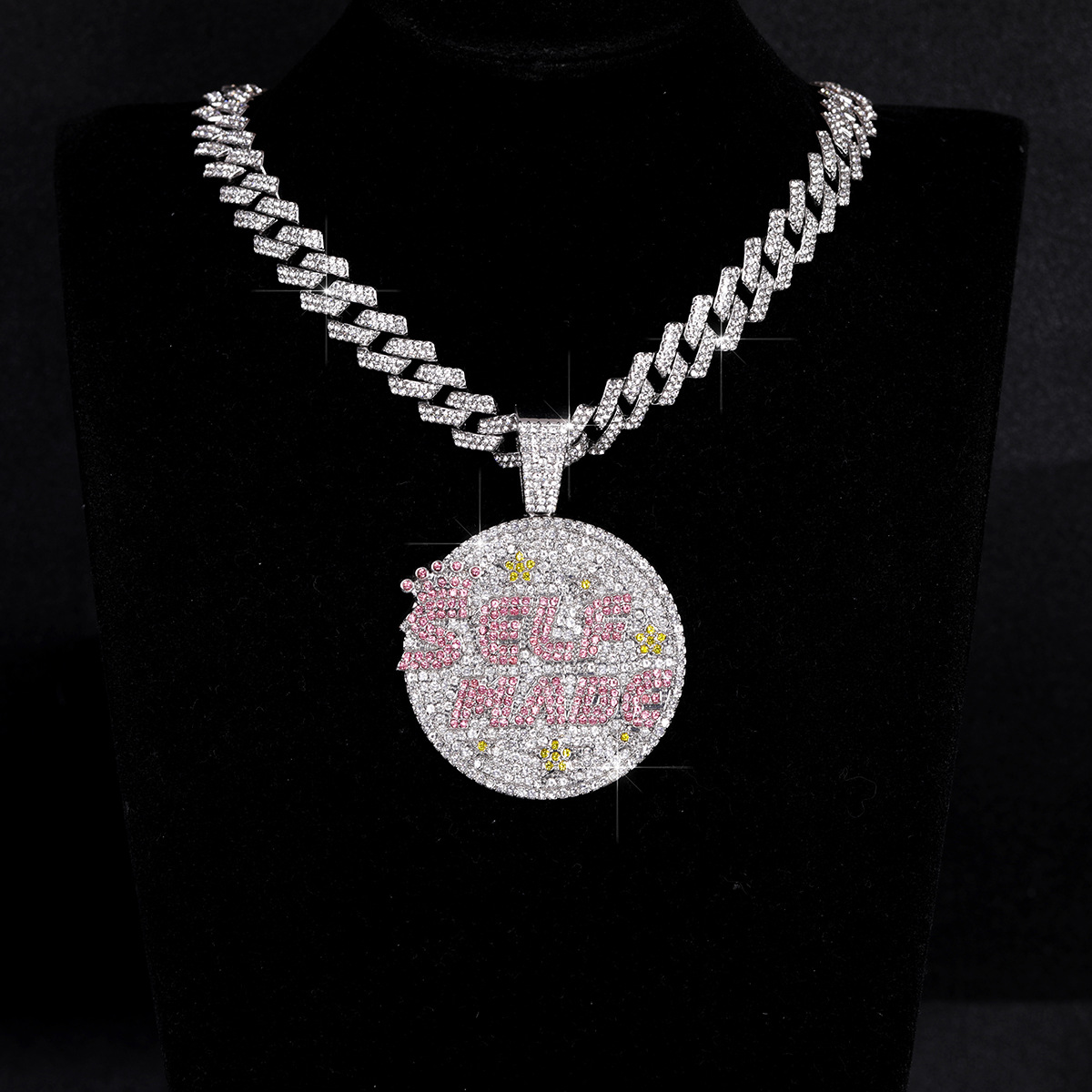 Cross-Border Popular Necklace Supply Hip-Hop Versatile Full Diamond Personalized Creative Design Pendant Personalized Men's and Women's Necklaces