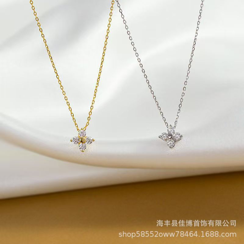 Cross-border AliExpress S925 Sterling Silver Four-leaf Clover Necklace Women Light Luxury Diamond Advanced Sense Lucky Clavicle Chain Wholesale
