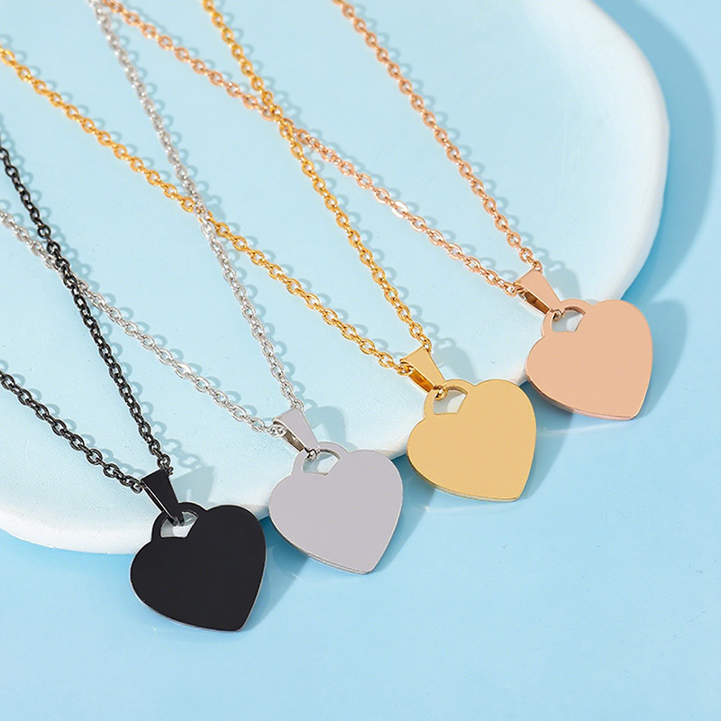 Stainless Steel Necklace in Stock Cross-Border Fan-Shaped Hole Heart-Shaped Blank Laser Uv Color Printing Material Engraved Stainless Steel Necklace