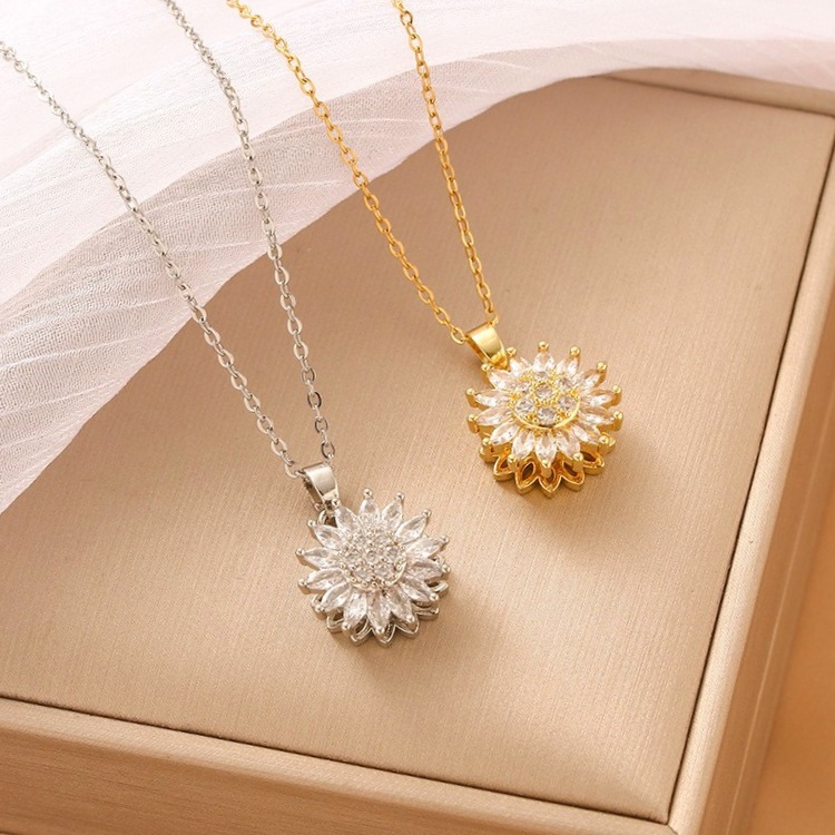 High-End Rotating Full-Diamond Sunflower Pendant Titanium Steel Necklace Women's Accessible Luxury Niche Design Non-Fading Clavicle Chain