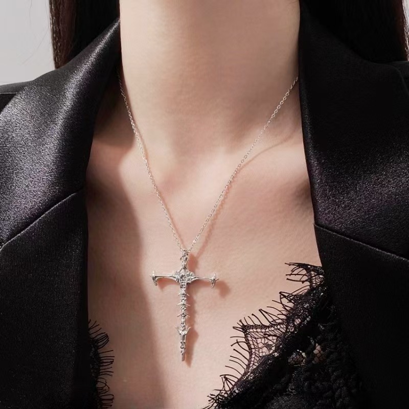 Skeleton Cross Necklace Women's High-End Accessible Luxury Niche Design Clavicle Chain Versatile Sweater Chain Necklace Accessories