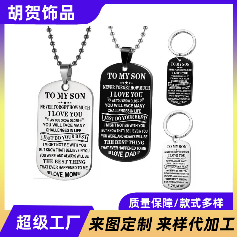 European and American Stainless Steel Jewelry to My Son Military Brand Necklace Stainless Steel Ball Chain Lettering Gift Manufacturer Wholesale