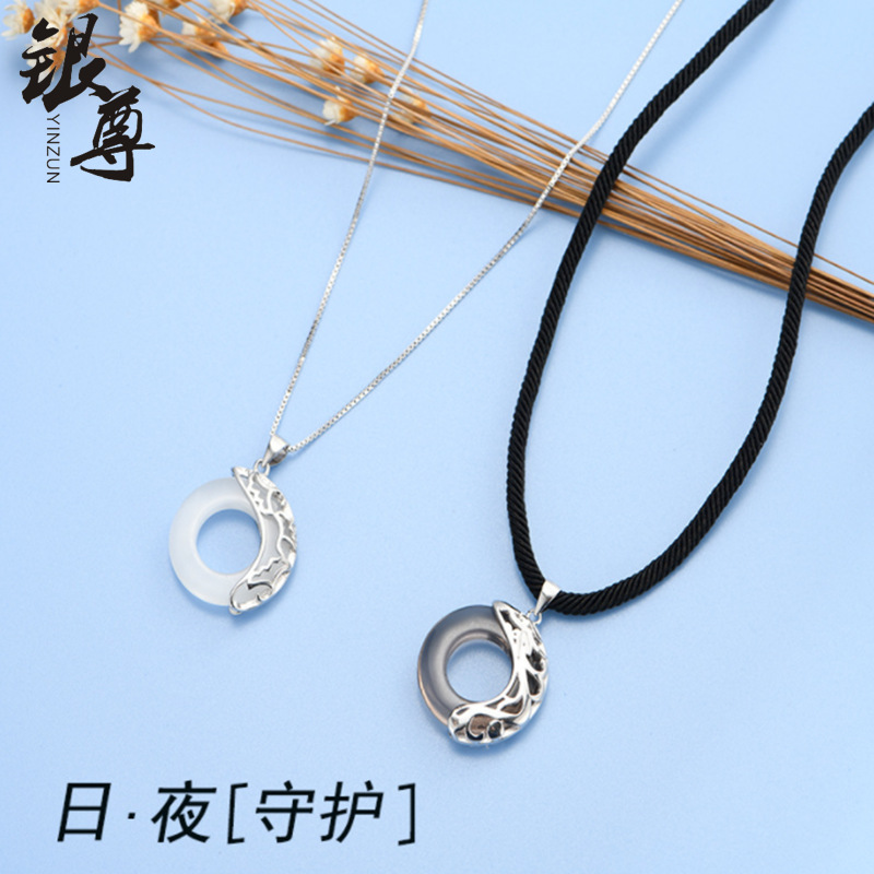 Silver S925 silver clavicle necklace female opal pendant men's obsidian dragon pattern pendant couple's pair of hair