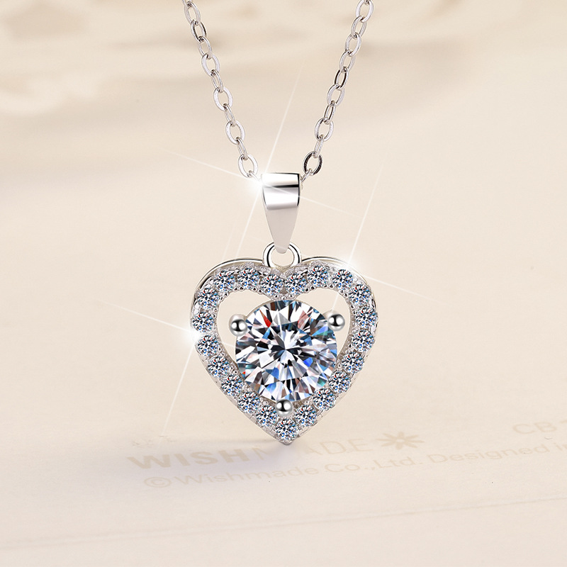 925 Sterling Silver Women's Necklace One Carat Heart-Shaped Pendant Plated 18K Silver Jewelry Manufacturer Wholesale Moissanite Clavicle Chain