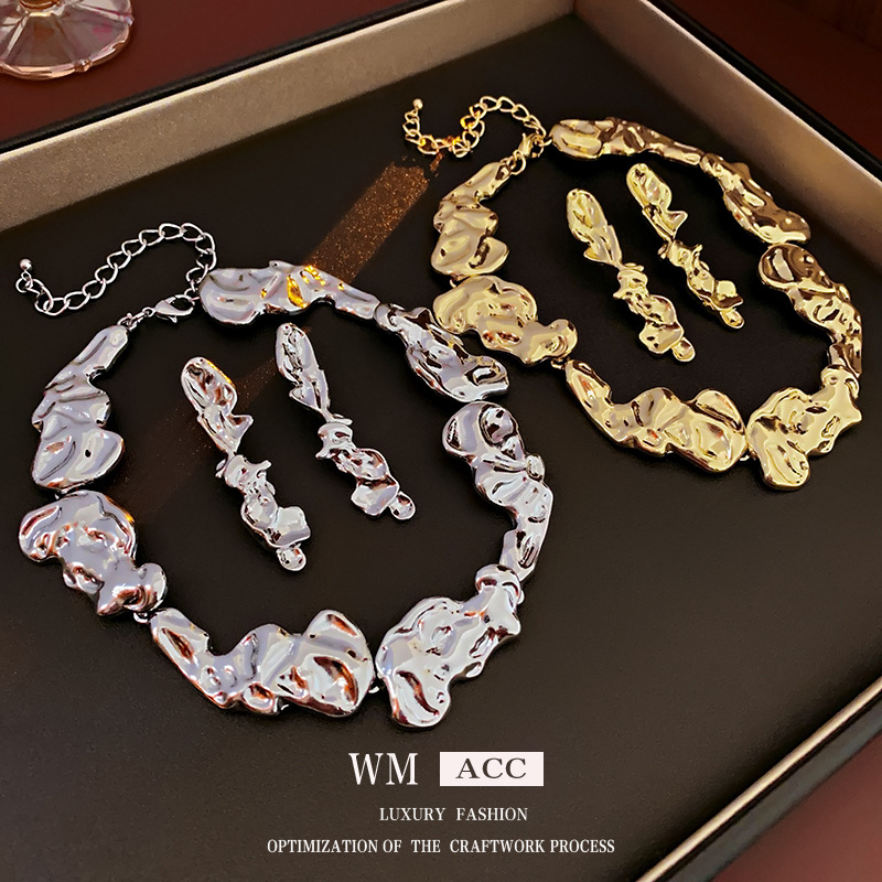 European and American irregular fold metal stitching necklace cold wind personality clavicle chain exaggerated niche necklace women wholesale