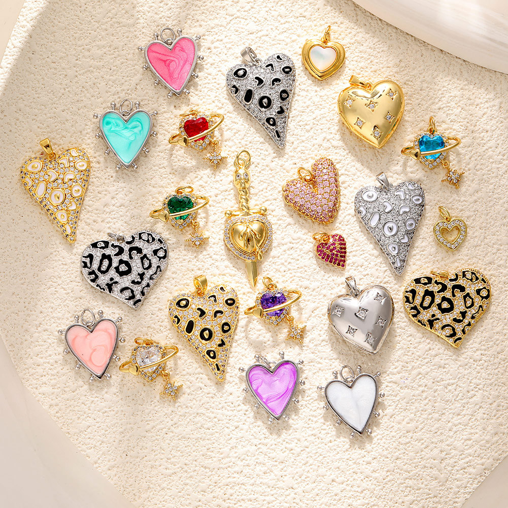 Cross-border in stock 18K gold and copper leopard love pendant oil drop enamel large mini heart diy jewelry accessories