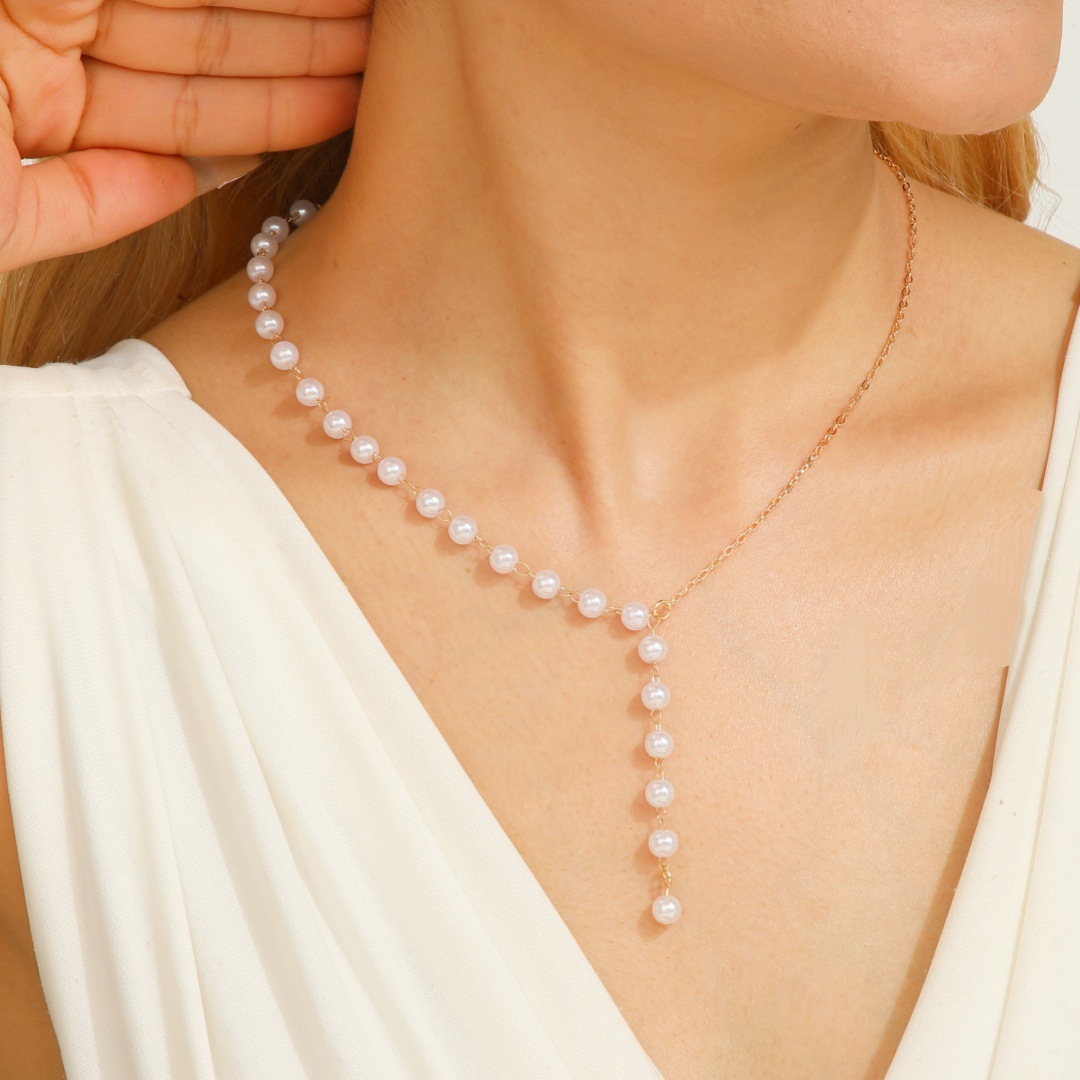 European and American Cross-Border Jewelry 2023 New Y-Shaped Long Asymmetric Pearl Necklace Elegant Pearl Tassel Necklace