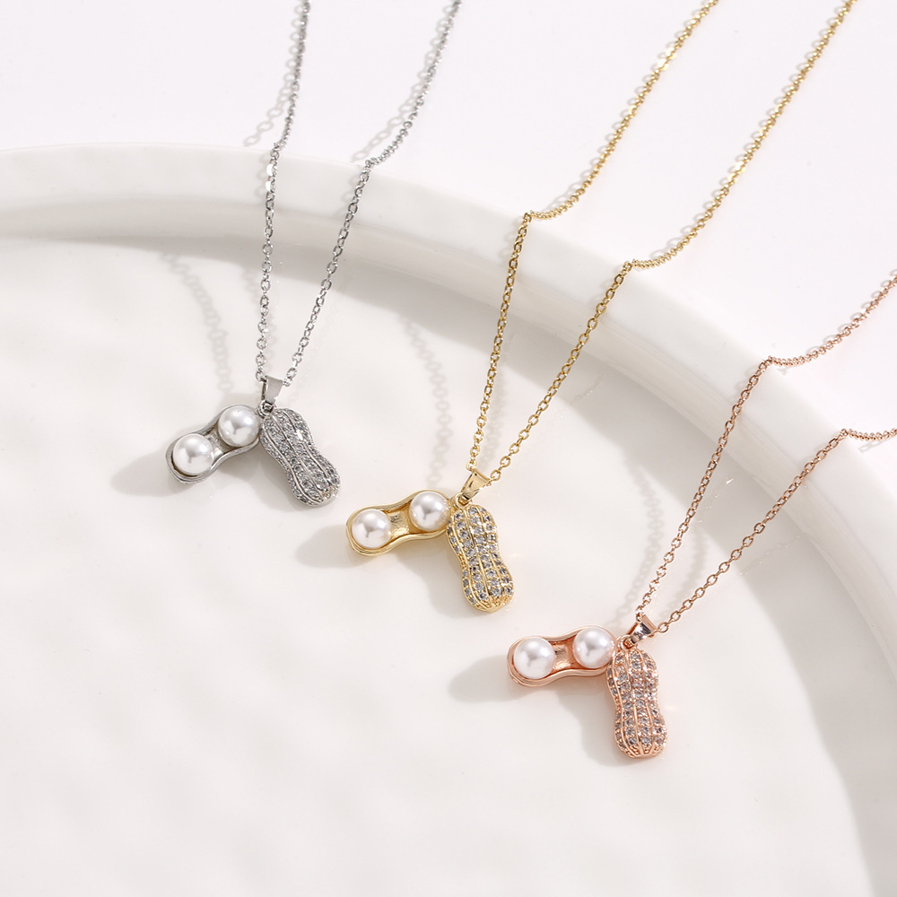 South Korea New Pearl peanut necklace niche fashion temperament design sense clavicle chain personality simple necklace wholesale