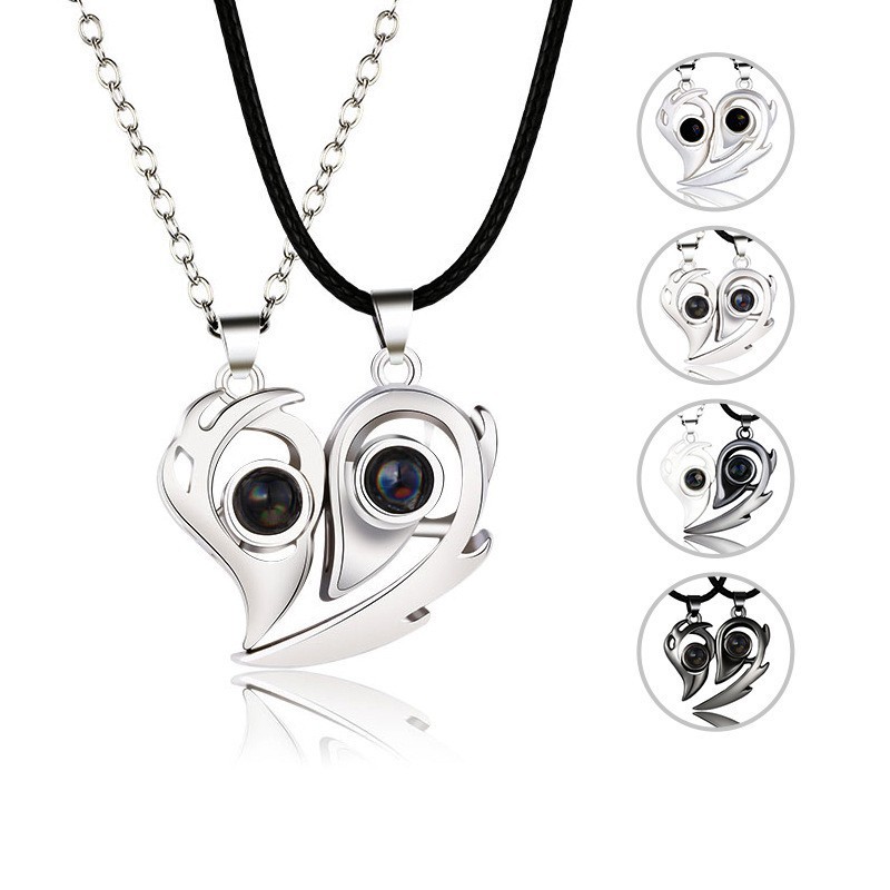 Magnets attract 100 languages I love you niche design projection necklace love lovers pendant a pair of wholesale