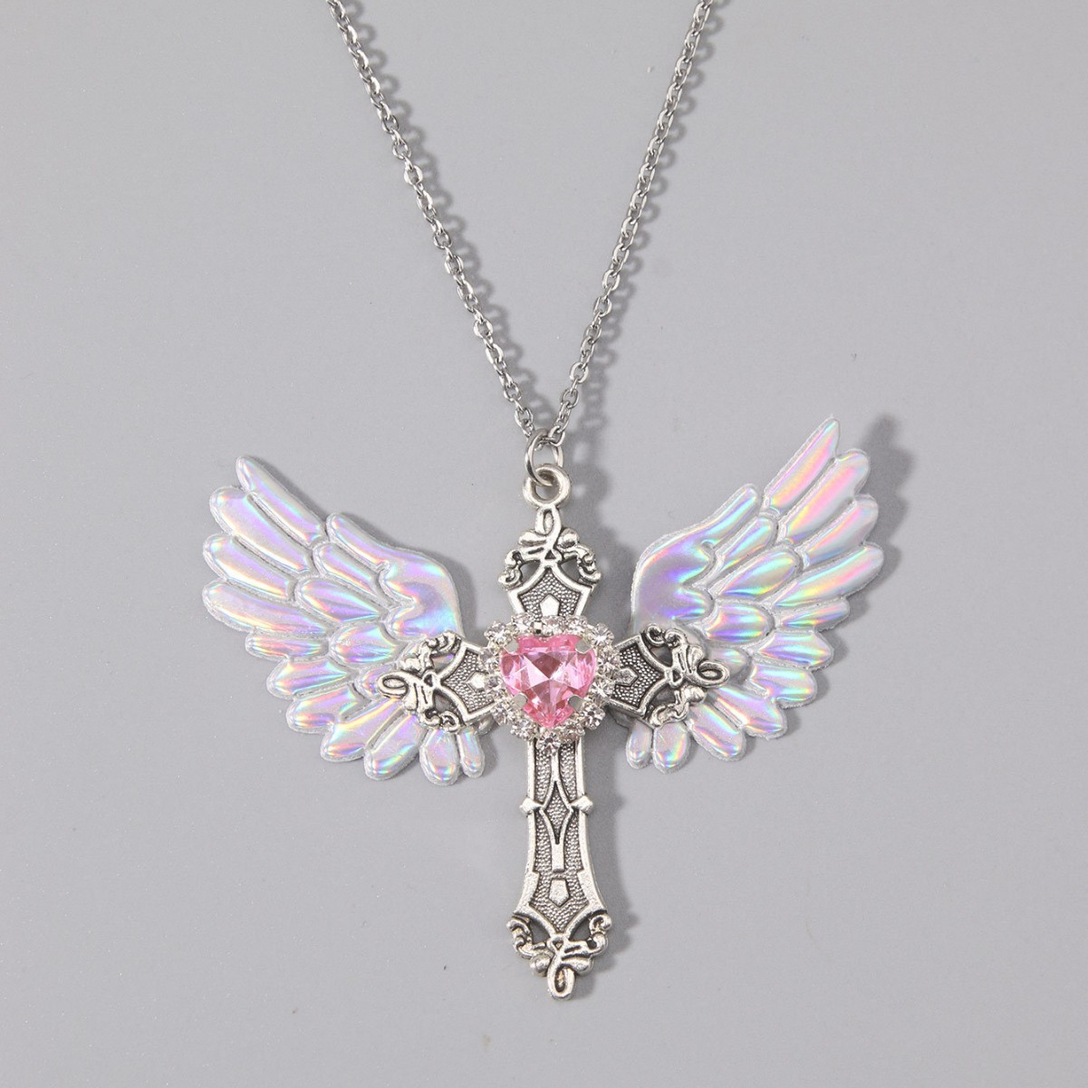 European and American Cross-Border Jewelry Dark Punk Wings Heart Dragonfly Bat Cross Five-Pointed Star Color Diamond Silver Chain Niche