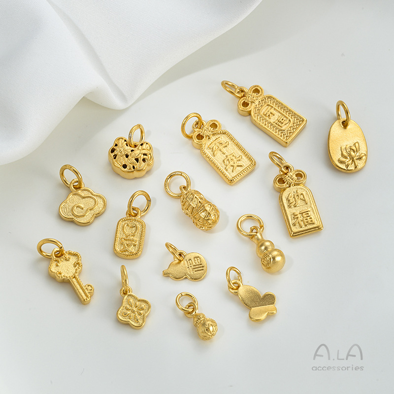 Strong color retaining sand gold Fulu gourd pendant butterfly lotus Nafu Ping An Ruyi tag bracelet chain jewelry pendant