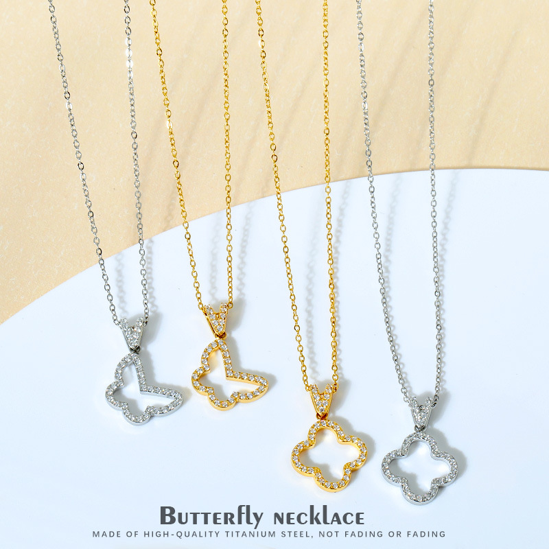 Cross-Border Titanium Steel Butterfly Necklace Non-Fading Petals Korean Style Women's Simple Korean Style Necklace Women's Light Luxury Niche