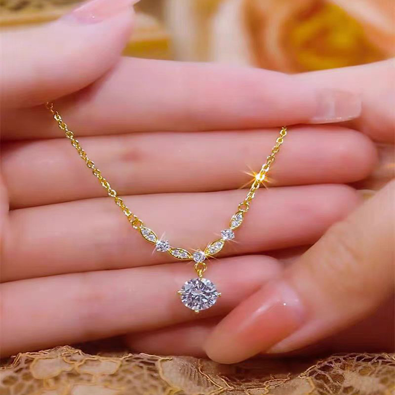Shining Necklace for Women, Niche Design, Simple and Versatile, Fashionable and Elegant, Zircon Pendant, Clavicle Chain, Wholesale from Manufacturer, Short Style