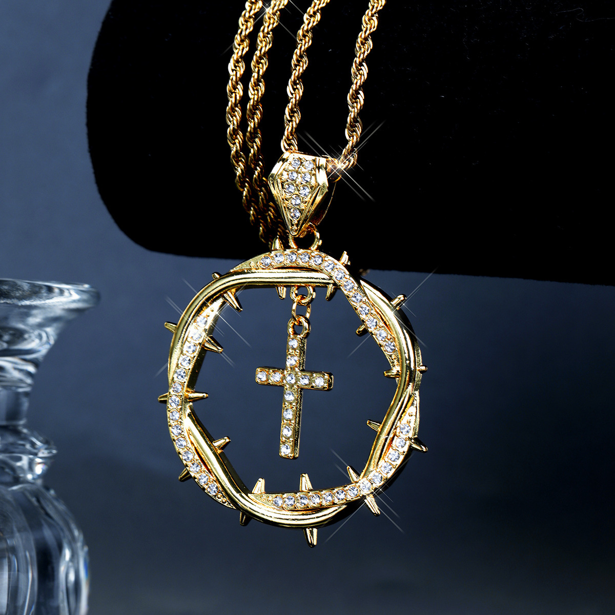 European and American Cross-Border Hot-Selling Entwined Thorns Diamond Cross Pendant Retro Creative Personalized Necklace Jewelry