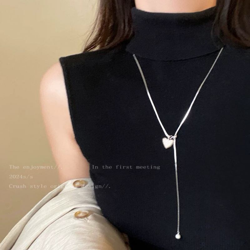 Titanium Steel Non-Fading Simple Heart Ball Tassel Long Pull Necklace Women's Versatile High-End Sweatshirt Sweater Chain