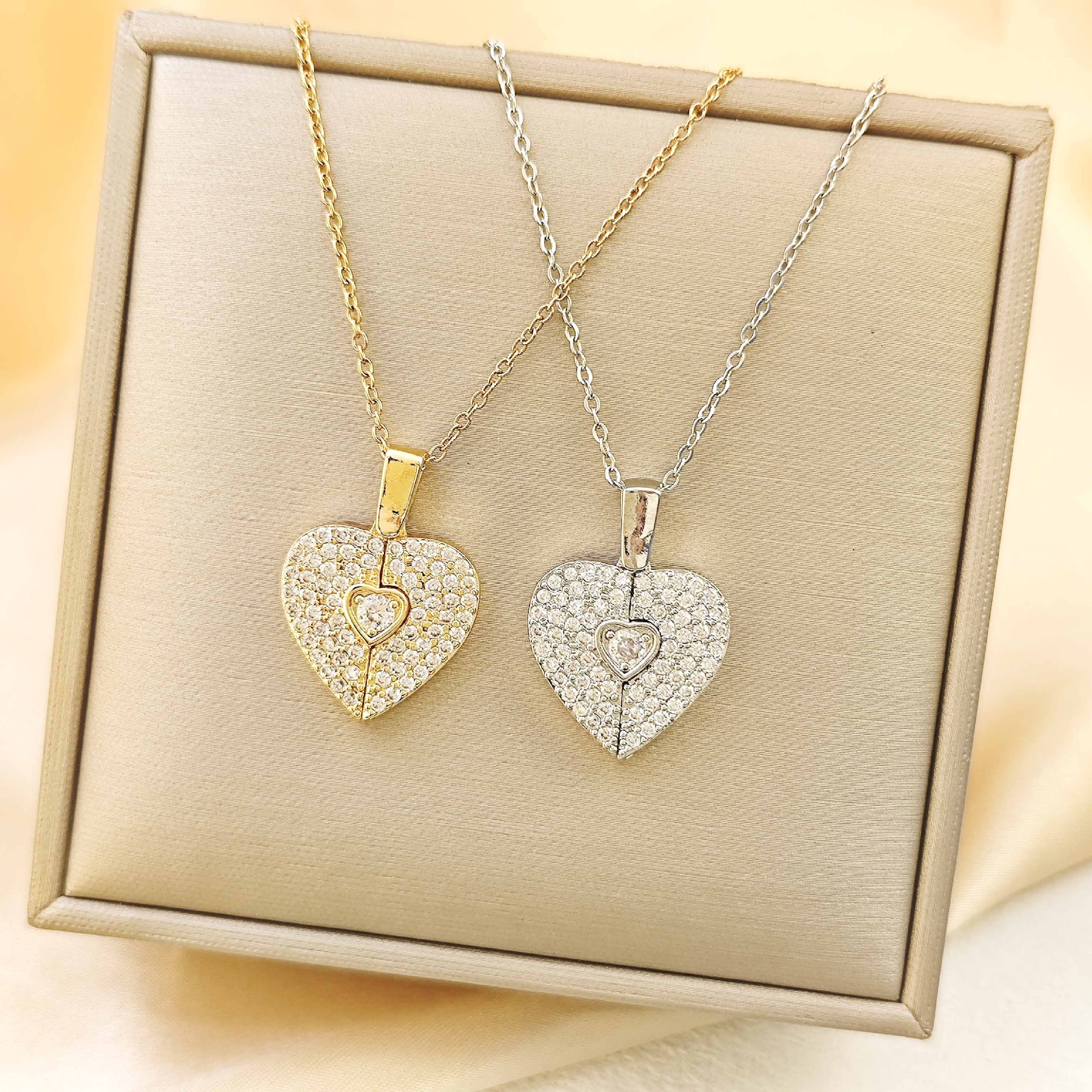 Cross-border Hot Sale Full Diamond Opening and Closing Love Necklace Light Luxury Niche Design All-match High-grade Titanium Steel Accessories