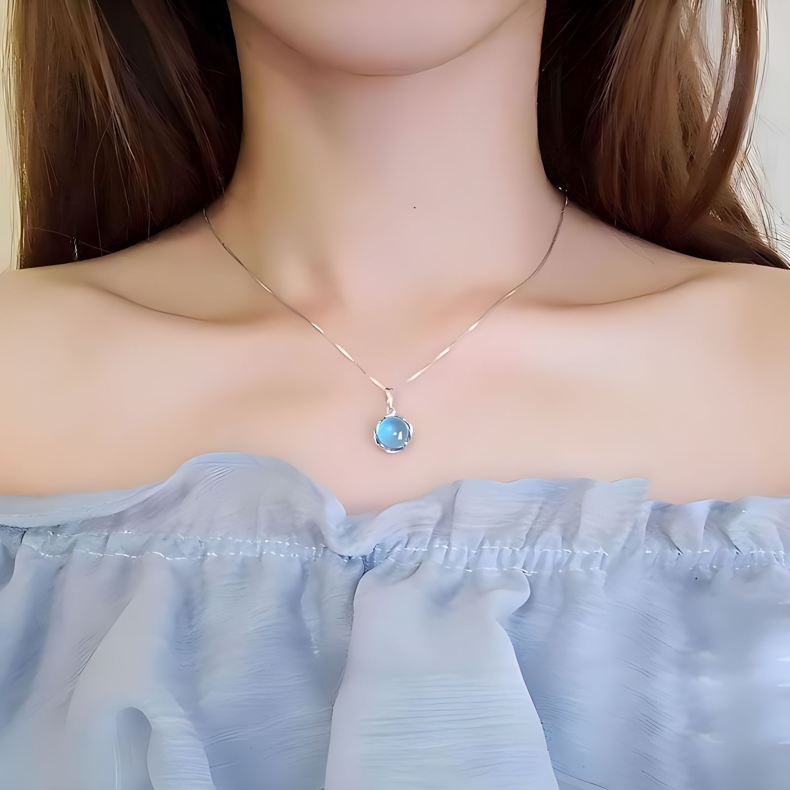 Silver Shell 925 sterling silver necklace aquamarine pendant clavicle chain female light luxury ins niche design gentle sweet necklace