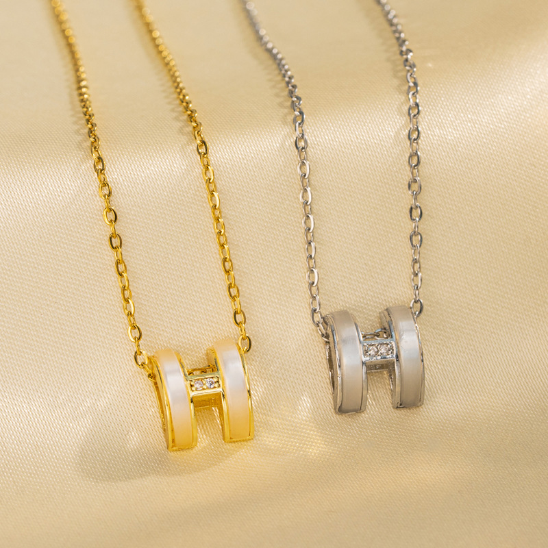 European and American Accessible Luxury Cat's Eye Stone H Letter Pendant Titanium Steel Necklace Women's Niche High-end Fashion Trendy Clavicle Necklace