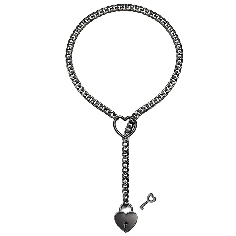 paloli women's slide chain necklace heart-shaped o-ring, punk rock cuban long necklace jewelry, adjustable