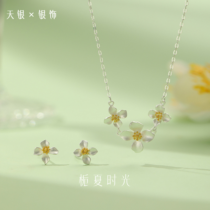 Original S999 Pure Silver Gardenia Summer Time Series Set Pastoral Style Niche Gentle and Fresh New Clavicle Chain Delivery