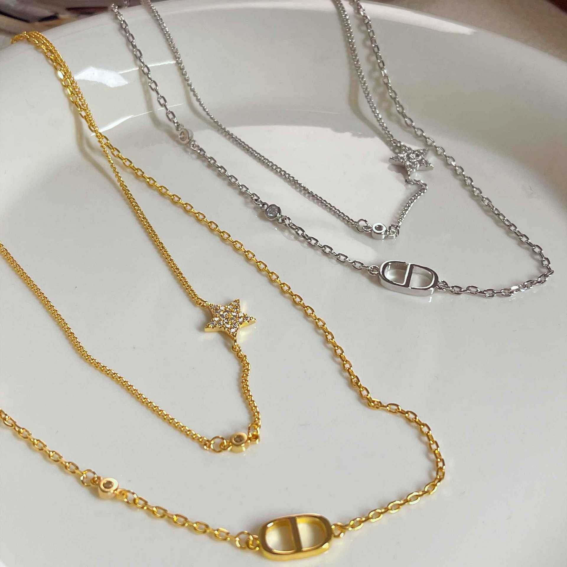Sweet and Cool Style Double-Layer Necklace with Micro-Inlaid Five-Pointed Star and Cool Letters Cd, Feminine, Accessible Luxury, High-End and Unique Clavicle Chain