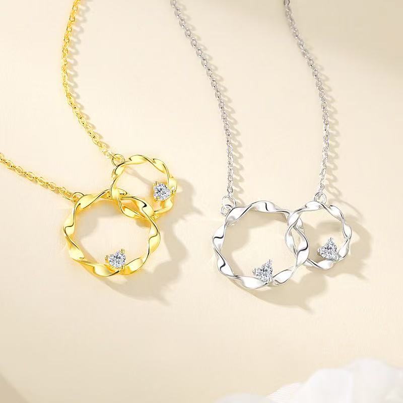 Lucky Garland Necklace, High-End Niche Design Jewelry, Exquisite Garland Interlocking Double Ring Pendant Clavicle Chain