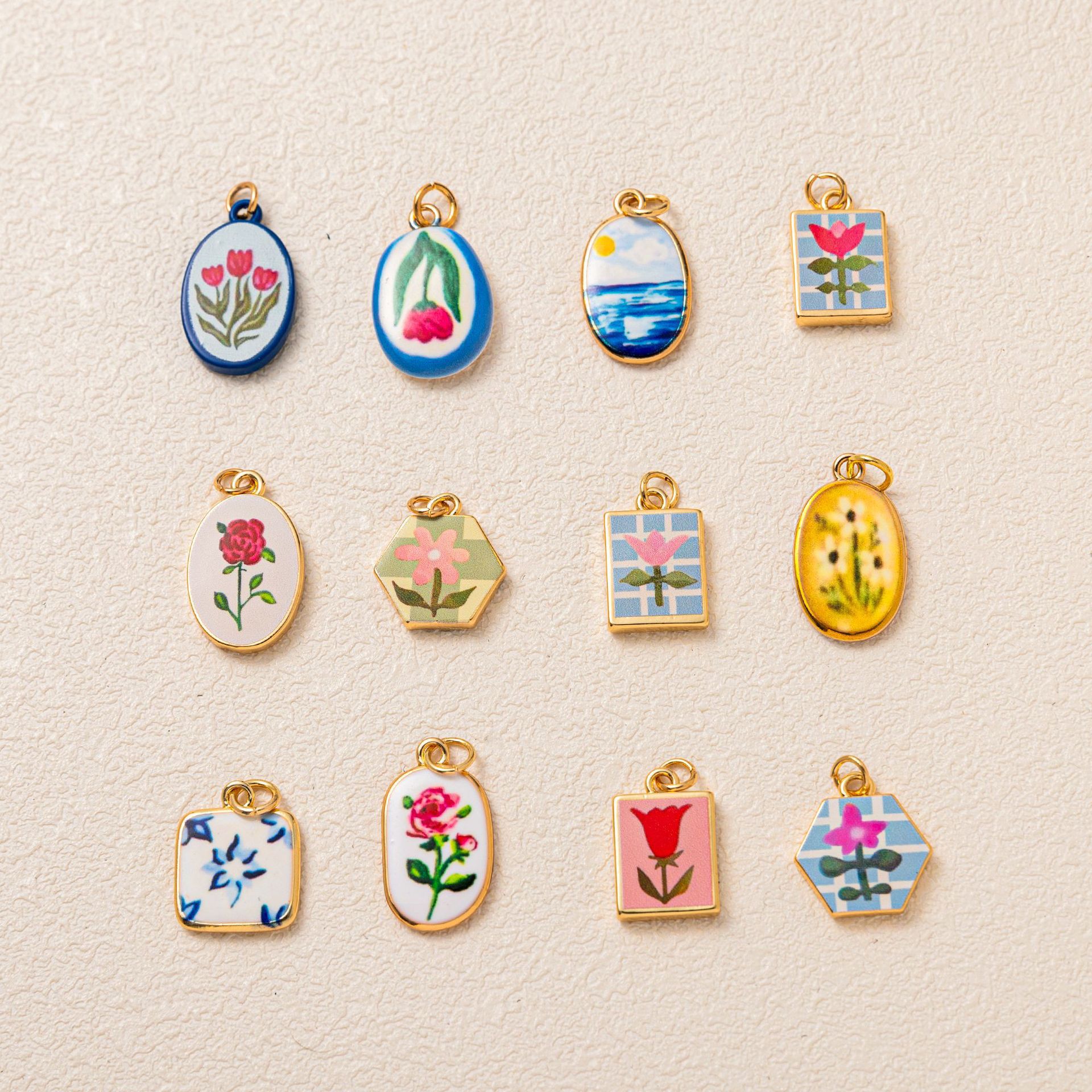 Color-Preserving European and American Fashion DIY New Accessories Printed Personalized Vacuum Electroplated Gold Cross-Border Basic Pendant