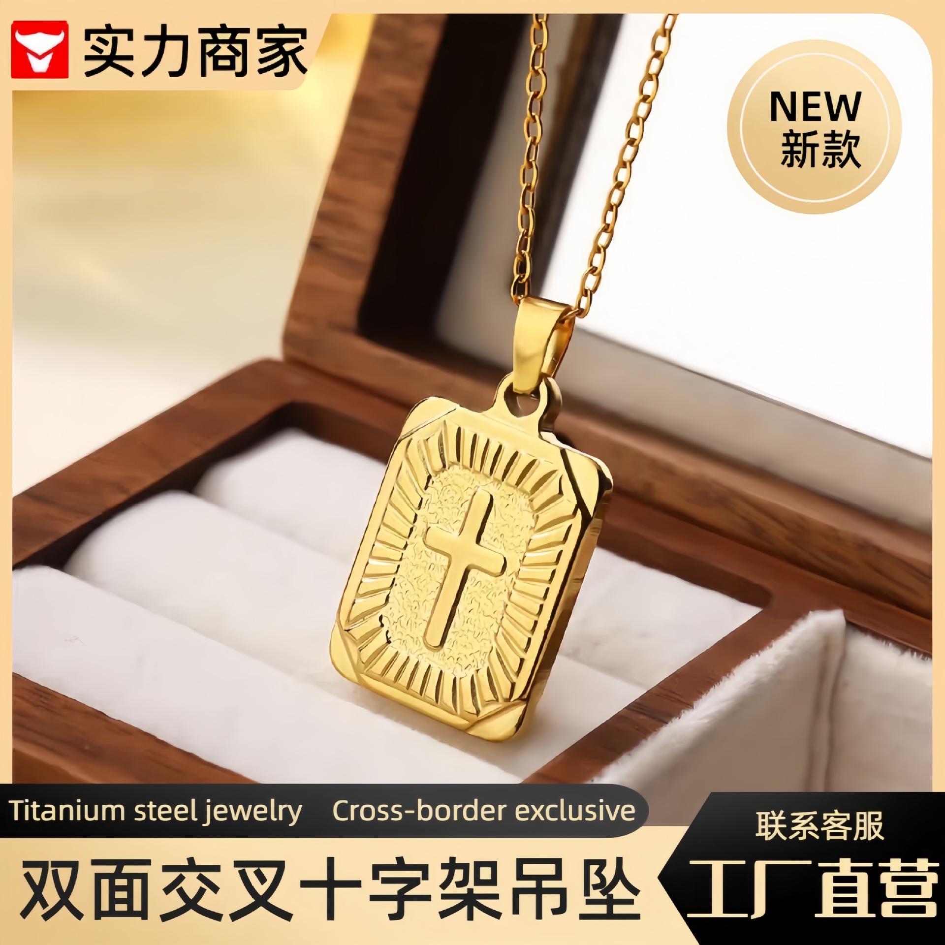 Huayue Amazon Cross-Border Men's and Women's Gold Square Stainless Steel Pendant Fashion Cross Letter Necklace Wholesale