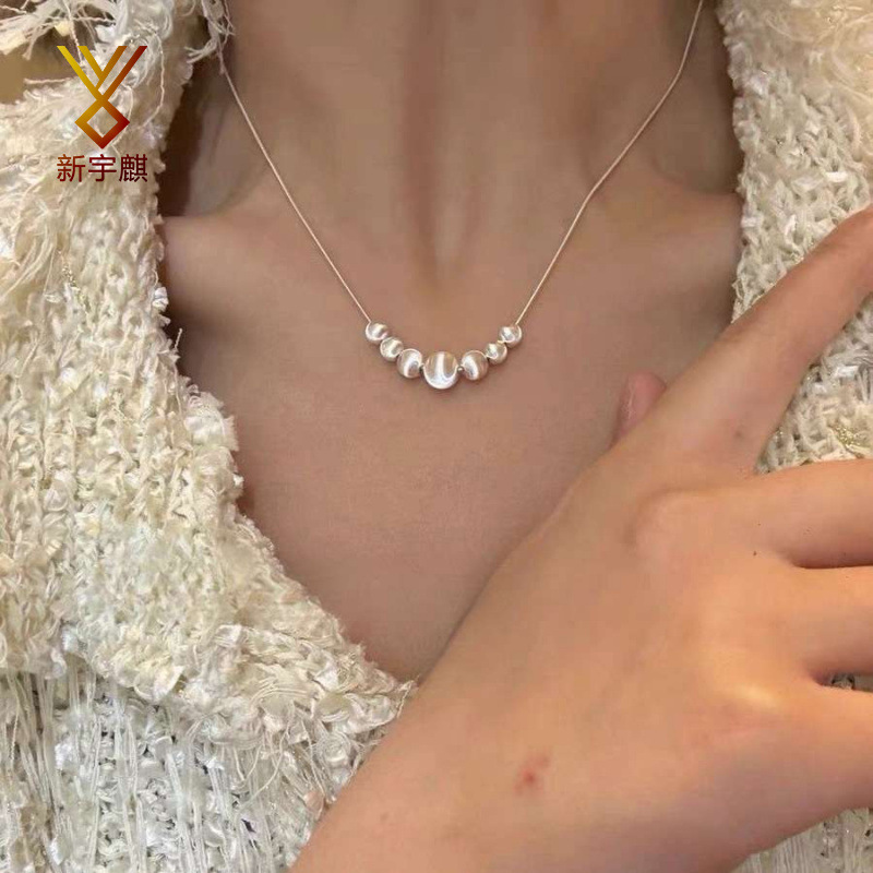 New Brushed Cat's Eye Round Bead Snake Bone Chain Necklace for Women, Light Luxury Niche Design, High-End, Simple and Elegant Clavicle Chain