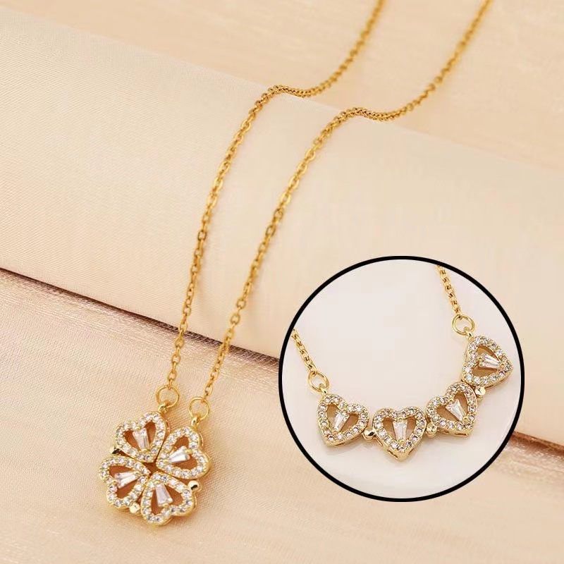 Full Diamond Four-Leaf Clover Necklace, Simple Diamond-Encrusted Two-Wear Popular Heart Clavicle Chain, Mother's Day Couple Gift