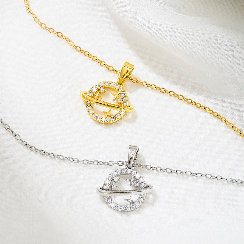 2024 Personalized Fashionable Small Planet Pendant High-grade Necklace Women's Light Luxury Niche All-match Sweet Collarbone Chain Jewelry