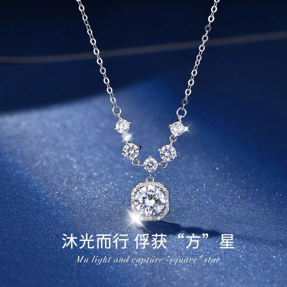 Necklace 999 Sterling Silver Sugar Cube Necklace Niche Design High-End Birthday Necklace Accessible Luxury Jewelry Women's High-End