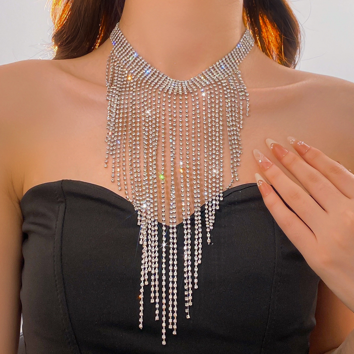 European and American Exaggerated Elegant Diamond Tassel Necklace Retro Palace Style Clavicle Chain Fashion Niche Jewelry Women's High-End