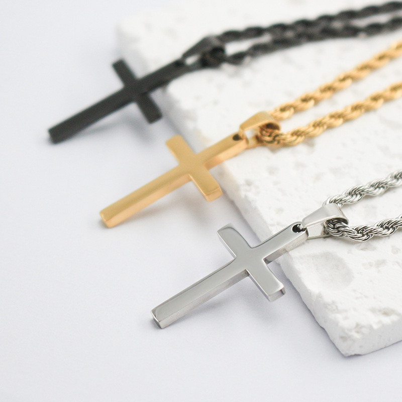 European and American Titanium Steel Cross Long Necklace Men's Trendy Engravable Pendant Glossy Simple Faith Necklace Wholesale