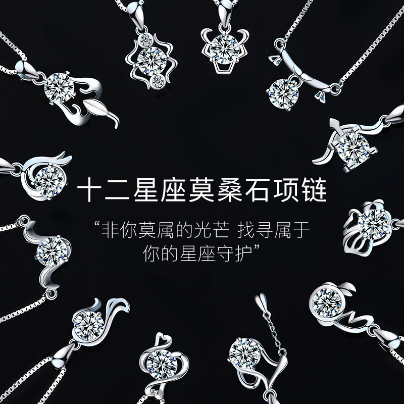 12 constellation pendant 925 sterling silver 1 karat moissanite twelve constellation necklace women's clavicle chain live supply