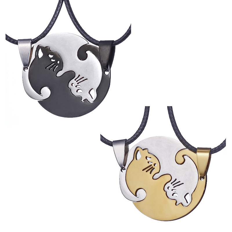 Cross-Border Hot Selling Kitten Couple Pendant Puzzle Cartoon Cat Necklace Valentine's Day Gift Factory Direct Sale