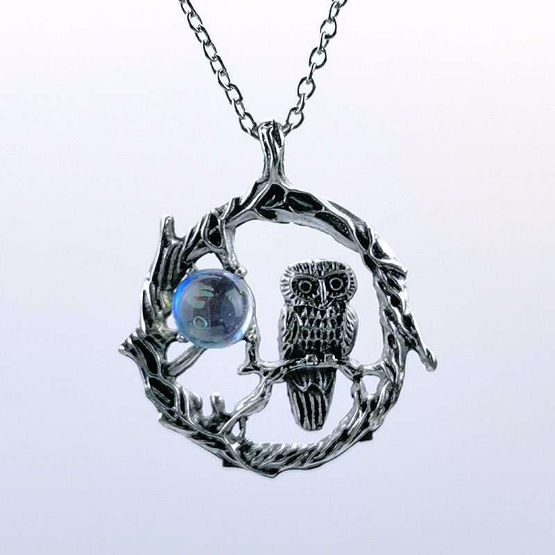 Wish Cross-Border Retro Moonstone Owl Animal Necklace Pendant Gothic European and American Men and Women Cut Out Necklace