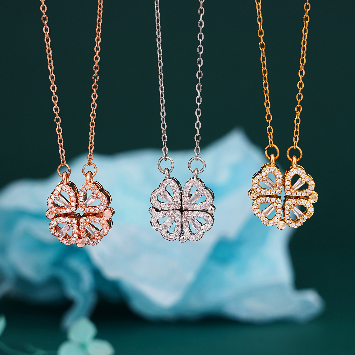 Multifunctional love four-leaf clover necklace female titanium steel light luxury niche design heart-connected magnet clavicle chain wholesale