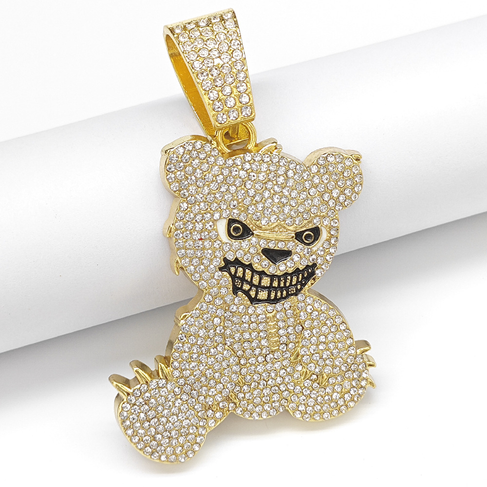 Wholesale European and American Classic Split-Mouth Bear Combination Pendant Fashion Rhinestone Men's Necklace Hip-Hop Jewelry