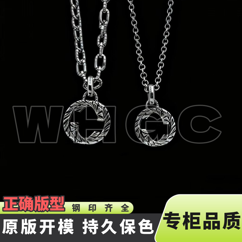 High-End Gujia 925 Silver Vintage Distressed Rattan Pattern Carved Necklace Interlocking Double g Gucci Necklace Unisex